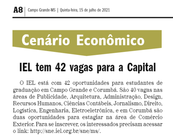IEL tem 42 vagas para a Capital